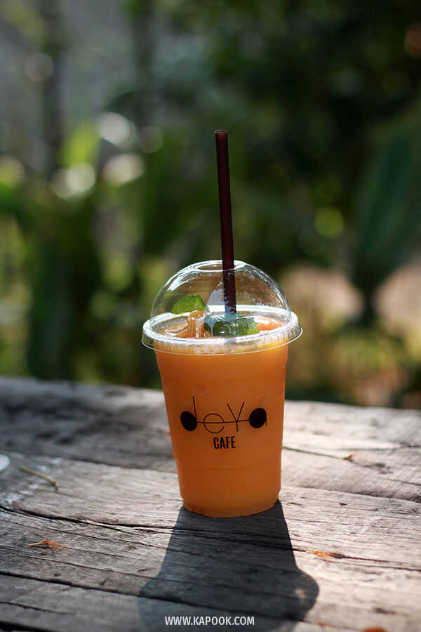 จริง ๆ ก็ยังไม่หมดแรงหรอกค่ะ แต่อากาศมันร้อนเหลือเกิน ร่างกายก็เลยต้องการเครื่องดื่มเย็น ๆ และขนมหวานมาเติมพลัง เจ้าถิ่นแนะนำว่าให้ลองไปชิลกันที่ร้าน De'Ya Cafe คาเฟ่สไตล์โมเดิร์นที่พร้อมเสิร์ฟทั้งอาหาร ขนมหวาน และเครื่องดื่ม