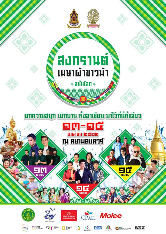กระทรวงวัฒนธรรม และ จุฬาลงกรณ์มหาวิทยาลัย ร่วมสืบสานวัฒนธรรมประเพณีที่ยิ่งใหญ่ ในคอนเซ็ปต์ สงกรานต์สีขาว "ไม่แป้ง ไม่โป๊ ไม่เปลือย และไม่แอลกอฮอล์" สนุกไปกับกิจกรรมต่าง ๆ มากมาย เช่น รื่นเริงไปกับกิจกรรมประเพณีสงกรานต์จากชาติอาเซียน, ร่วมสรงน้ำพระเพื่อความเป็นสิริมงคลในวันปีใหม่ไทย, สนุกสนานไปกับการแสดงของศิลปิน นักร้องชื่อดังมากมาย และร่วมสัมผัสสไลเดอร์ยักษ์ใจกลางเมือง สูงเท่าตึก 3 ชั้น ยาวกว่า 100 เมตร