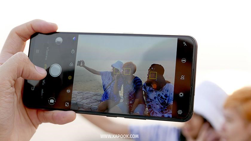ส่วนกล้องหลังก็ไม่น้อยหน้า โอ้โห มาพร้อมกันถึง 3 เลนส์ (AI Triple Camera) 12MP + 8MP + 5MP โดยกล้องหลักมีความละเอียด 12 ล้านพิกเซล ใช้เซ็นเซอร์ขนาด 1/2.8” และรูรับแสงขนาดใหญ่ f/1.78 พร้อมเทคโนโลยี Dual Pixel Focusing ที่จะเพิ่มประสิทธิภาพในการถ่ายภาพ เก็บแสงได้ดียิ่งขึ้น โฟกัสได้รวดเร็ว ตามมาด้วยกล้องรองที่มีความละเอียด 8 ล้านพิกเซล ที่จะเก็บเลนส์มุมกว้างได้ถึง 120 องศา (AI Super Wide-Angle) กับกล้องอีกตัวที่มีความละเอียด 5 ล้านพิกเซลกันเลย (Depth Camera)