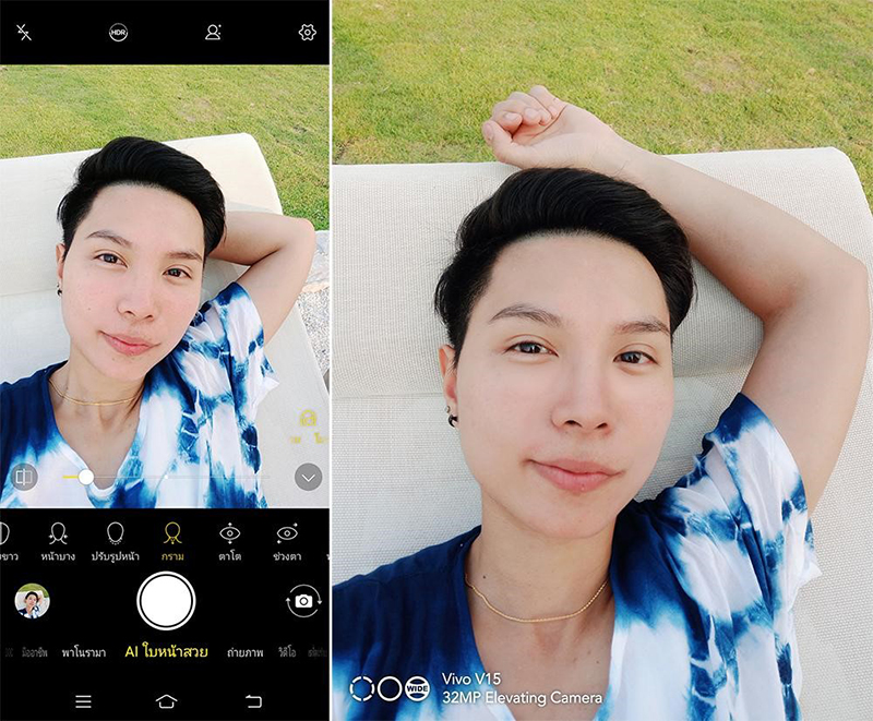 สำหรับกล้องหลัง Vivo V15 ตัวนี้หากใครที่ต้องการเก็บรายละเอียดกับภาพมุมกว้างบอกเลยว่าสบายมาก เพราะมี AI Super Wide-Angle สามารถถ่ายภาพมุมกว้างได้ถึง 120 องศา ทำให้เก็บภาพทุกรายละเอียดที่ต้องการได้ หมดห่วงเรื่องมุมภาพแคบ ๆ ไปเล้ย