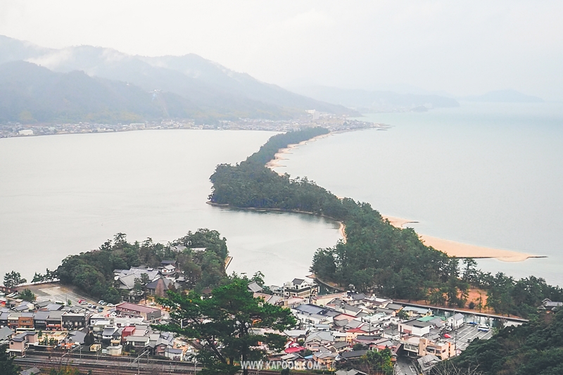 และอีกด้านของต้นสนสวย ๆ เหล่านี้ คุณจะต้องชอบกับภาพวิวเบื้องหน้าที่มองเห็นหาดทรายและน้ำทะเลใส ๆ ริมสันทรายอามาโนะฮาชิดาเตะ รวมถึงยังเป็นหมู่บ้านที่อยู่ด้านฝั่งตรงข้ามอีกด้วย เอาจริง ๆ แล้วบริเวณนี้ทั้งหมดน่าจะถูกใจเหล่าบรรดานักท่องเที่ยวที่ชอบถ่ายรูป เพราะมีมุมสวย ๆ ให้คุณได้โพสท่าถ่ายรูปเพียบเลย