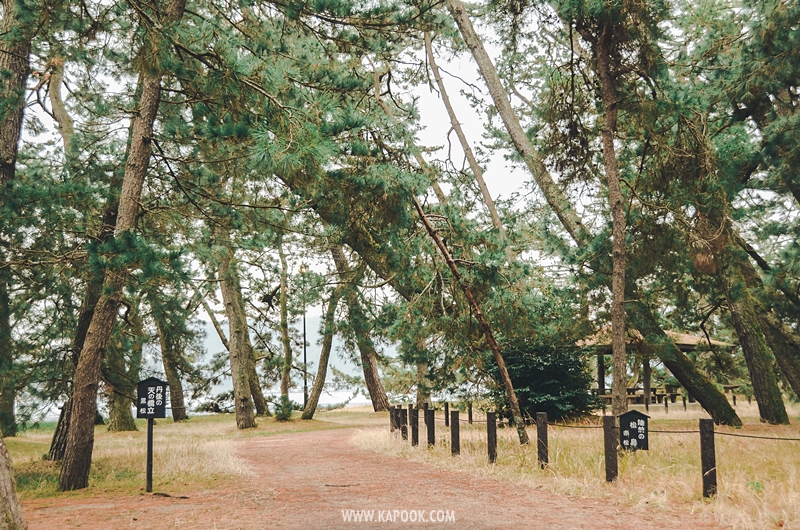 อีกหนึ่งสัญลักษณ์คู่การมาเที่ยวอามาโนะฮาชิดาเตะอีกหนึ่งอย่าง น่าจะอยู่ที่การได้เพลิดเพลินไปกับทิวต้นสนสีเขียวสูงใหญ่ ที่แผ่กิ่งก้านสาขาร่มเงา หรือบางกิ่งที่หมดอายุขัย ก็หล่นร่วงปลิดปลิวลงสู่พื้น ทำให้พื้นทางเดินบริเวณนั้นเป็นสีน้ำตาล ดูเป็นภาพสวยงามแปลกตาและไม่ซ้ำใคร