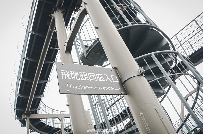 อีกหนึ่งจุดถ่ายรูปและจุดชมวิวสวย ๆ ที่ Amanohashidate View Land เห็นจะหนีไม่พ้น “ไฮเรียวกัง” (Hiryukan-kairo) โดดเด่นด้วยสถาปัตยกรรมโครงสร้าง และมีทางเดินเล็ก ๆ เดินคดเคี้ยวขึ้นไปเรื่อย ๆ ซึ่งได้รับแรงบันดาลใจการออกแบบมาจากลำตัวของมังกร