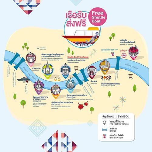 เชิญช้อป ชม ชิม บันเทิงใจสุขใจรับสิริมงคล ณ 9 ท่าน้ำ โดยจะมี *** บริการเรือด่วนรับ-ส่งฟรี ให้บริการใน 9 ท่าน้ำ แบ่งเป็น 2 ช่วงเวลา ช่วงแรก 09.00-17.00 น. ช่วงที่สอง 17.00-22.00 น. ณ ท่าเรือ เอเชียทีค เดอะ ริเวอร์ฟร้อนท์ ดูรายละเอียดเพิ่มเติมได้ที่