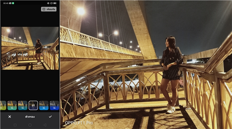 และแม้จะออกทริปตั้งแต่เย็นยันค่ำ และเดินถ่ายรูปเก็บเล็กเก็บน้อยมาตลอดทาง แต่แบตฯ ก็ยังไม่หมดนะจ๊ะ เพราะว่าให้มาถึง 4000 mAh แต่งรูปต่อได้สบาย ๆ แถมยังมีฟิลเตอร์ให้เลือกเป็นสิบเลย ชอบแบบไหนก็จัดไปได้เลยจ้า บอกแล้วแอปฯ อื่นไม่ต้อง OPPO F11 Pro เครื่องเดียวจบ