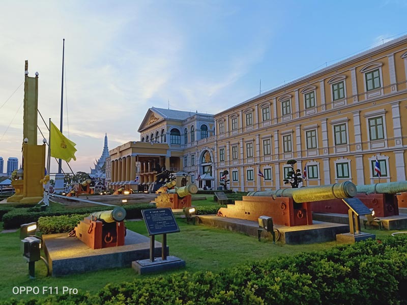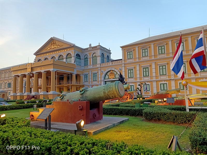 จุดออกสตาร์ตของเราอยู่ที่อาคารกระทรวงกลาโหม สถาปัตยกรรมสไตล์ยุโรป แม้จะมีอายุกว่าร้อยปี แต่ก็ยังดูสดใสสวยงาม เห็นแบบนี้แล้วก็ขอหยิบ OPPO F11 Pro มาเก็บภาพสวย ๆ สักหน่อยด้วยกล้องหลังคู่ 48MP+5MP และรูรับแสง F1.79 ทำงานคู่กับเลนส์ 6P และโหมดการถ่ายที่เพียงแค่แตะก็ทำให้ได้ภาพคมชัด สว่าง สดใส