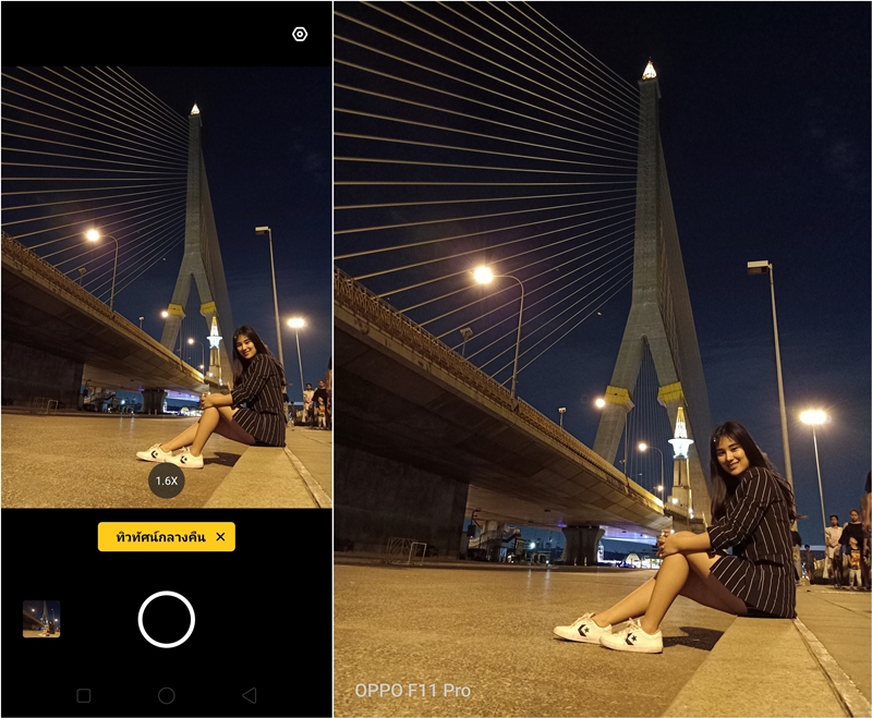 สำหรับคนที่ไม่ถนัดตกแต่งภาพเอง ก็ไม่จำเป็นต้องปรับอะไรเลย ก็เพราะว่า OPPO F11 Pro มี AI Scene Recognition ที่สามารถระบุประเภทภาพได้ถึง 23 ชนิด ผู้ช่วยที่จะปรากฏขึ้นมาอัตโนมัติ เพื่อช่วยปรับองค์ประกอบต่าง ๆ ของภาพให้เหมาะสมกับฉากได้มากถึง 864 ฉาก แค่กดชัตเตอร์ก็ได้รูป Night Portrait สวย ๆ มาเก็บไว้ในอัลบั้มแล้วล่ะ