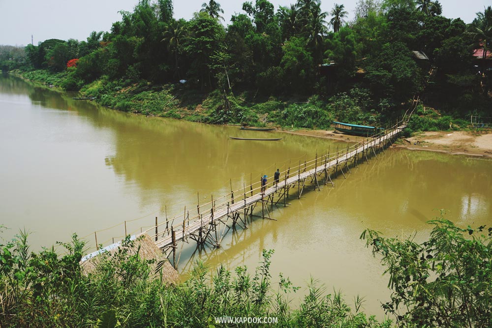 ถ้าหาสถานที่ถ่ายรูปเล่นชิค ๆ ก็แนะนำให้ลองไปสะพานไม้ไผ่ที่ทอดข้ามแม่น้ำคานแห่งนี้กัน ตั้งอยู่บริเวณถนน Kingkitsarath Rd. ใกล้กับโรงแรม Saynamkhan River View สะพานก็สร้างอย่างเรียบง่ายด้วยวัสดุธรรมชาติอย่างไม้ไผ่นี่แหละ เพื่อให้ชาวบ้านและนักท่องเที่ยวเดินข้ามฝั่งไป-มาระหว่างเมืองเก่าและอีกฝั่งของน้ำคาน ก็เป็นอีกมุมของหลวงพระบางที่น่าไปถ่ายรูปเล่น เปิดทุกวัน มีค่าธรรมเนียมประมาณ 5,000 กีบ