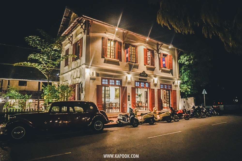 เป็นอีกร้านอาหารหลวงพระบางในดวงใจ ซึ่งเป็นส่วนหนึ่งของโรงแรม 3 Nagas Luang Prabang, MGallery by Sofitel บรรยากาศคลาสสิกมาก อยู่ในเรือนไม้ตรงข้ามกับตัวโรงแรม ซึ่งจะมีรถโฟล์กเก่าจอดเท่ ๆ อยู่ด้านหน้า เข้ากับสีสันของตัวตึกสีแดงขาวสไตล์โคโรเนียล