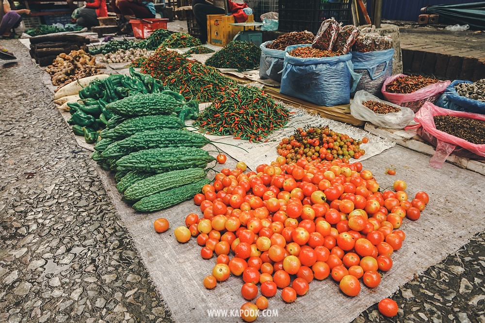 ถือเป็นตลาดที่เปิดหูเปิดตามาก ๆ เพิ่งเข้าใจนิยามของคำว่าตลาดสดก็วันนี้ เพราะของที่จำหน่ายในตลาดนั้นสดขนาดที่ว่าเอาไก่ตัวเป็น ๆ ที่ยังนั่งขันรับวันใหม่อยู่มาขายกันเลยทีเดียว ตลาดเช้าที่นี่จะอยู่ในซอยเล็ก ๆ บนถนนกิทสะลาด (Kitsalat Rd.) ชาวบ้านจะขายกันง่าย ๆ ไม่มีโต๊ะก็เอาถุงปุ๋ยรองวางเทขายผักขายเนื้อกันแบบนั้นเลย