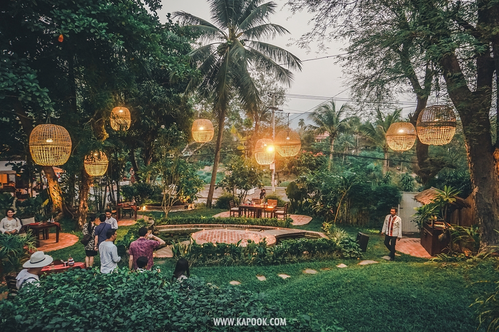 ที่ห้องอาหารจะมีทั้งโซนอินดอร์และเอาต์ดอร์ให้เลือกนั่งดื่มด่ำกับอาหารพื้นเมืองหลวงพระบางชิล ๆ เมนูที่น่าสนใจ เช่น Khaiphaen Jeund, Mee Gouy Phan, Luang Prabang salad, Laab, Naem Tha-Deu, Sai Oua Mhoo, Khoua Mhoo Sai Khing, Khoua Sine Nghoua Sai Krathiem, Phanaeng Kai เป็นต้น ดูรายละเอียดเพิ่มเติมได้ที่