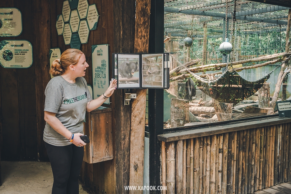 ที่นี่เหมือนของแถมของการได้มาเที่ยวน้ำตกตาดกวางสี เพราะตั้งอยู่ภายในพื้นที่ของน้ำตกตาดกวางสี แต่เอาจริง ๆ อยากให้แวะมาหาน้องเยอะ ๆ เพราะเป็นสถานที่ดูแลและช่วยเหลือหมีจากการลักลอบค้าสัตว์ป่าจากที่ต่าง ๆ ในประเทศลาว บางตัวน่ารักมาก เฟรนด์ลี่ ได้ชมกันแบบใกล้ชิด ด้วยภายในศูนย์จะจัดส่วนแสดงให้เปิดโล่งกว้าง มีต้นไม้น้อยใหญ่มากมาย มีสภาพคล้ายกับป่าย่อม ๆ เพื่อให้หมีได้พักฟื้นกับธรรมชาติอย่างแท้จริง มีทางเดินลัดเลาะไป-มารอบ ๆ พร้อมกับมีป้ายให้ความรู้ตลอดทางเดิน ส่วนหนึ่งของค่าเข้าชมน้ำตกตาดกวางสีก็จะนำมาบริจาคช่วยเหลือหมีเหล่านี้นี่แหละ