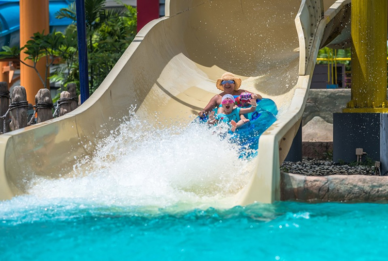 เต็มอิ่มกับสไลเดอร์ที่ใหญ่ที่สุดในโลกอย่าง อะบิส เรือยางสำหรับ 6 คน ที่จะพาคุณและเพื่อนร่วมแก๊งดิ่ง เหวี่ยง สู่อุโมงค์ยักษ์ด้วยความเร็วกว่า 45 กม./ชม., อินเนอร์ทูป สไลเดอร์ที่จะพาคุณสไลด์ไหลตีโค้งวนลงสู่พื้นน้ำเบื้องล่าง เรียกความตื่นเต้นเสียววาบด้วยความเร็ว 25 กม./ชม., อควาลูป สไลด์ที่จะพาคุณเหวี่ยงหมุน 360 องศา ท้าทายแรงโน้มถ่วงของโลก และสนุกสนานไปกับกิจกรรมมากมาย พร้อมทั้งร้านอาหารนานาชาติและร้านค้าของที่ระลึกหลากหลายแบบให้เลือกช้อป