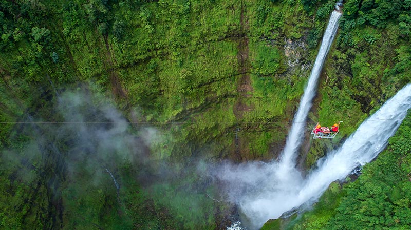 แต่ไฮไลต์ของที่นี่ ก็คือ กิจกรรมแนวผจญภัย ทั้งการโหนซิปไลน์ข้ามน้ำตก และการปีนหน้าผาบริเวณน้ำตก ทั้งนี้กิจกรรมโหนซิปไลน์ก็ได้รับความนิยมจากนักท่องเที่ยวค่อนข้างมาก เพราะเป็นซิปไลน์ที่มีความสูงราว ๆ 220 เมตรเลยทีเดียว และยังมีให้เลือกว่าจะโหนไปด้วยมือเฉย ๆ หรือจะนั่งจิบกาแฟ รับประกันความหวาดเสียว