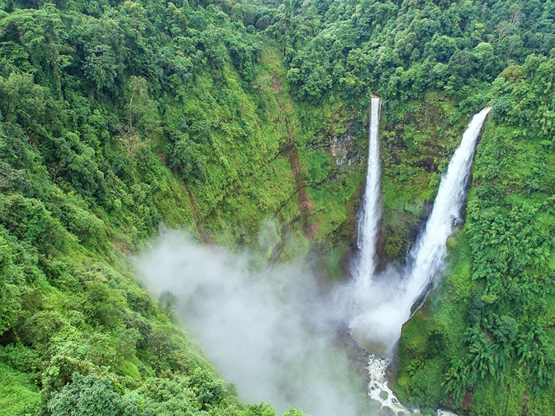 น้ำตกลับใจกลางป่าแห่งแขวงอัตตะปือ ห่างจากเมืองปากเซ แขวงจำปาสัก ราว ๆ 120 กิโลเมตร เป็นน้ำตกขนาดใหญ่อยู่บนลำน้ำวังเงา (Vang Ngao River) เกิดจากการยุบตัวของแผ่นดินทำให้กลายเป็นน้ำตกลักษณะคล้ายกับกำแพงม่านน้ำกว้างใหญ่ ในช่วงหน้าน้ำจะมีน้ำจำนวนมหาศาลจนแทบไม่เห็นร่องหินบนน้ำตก แต่ถ้าเป็นช่วงหน้าแล้งน้ำจะน้อยลง ทำให้สามารถลงไปเล่นน้ำในแอ่งน้ำใกล้ ๆ น้ำตกได้ พร้อมทั้งยังสามารถทำกิจกรรมแอดเวนเจอร์อย่างการปีนหน้าผาน้ำตกได้ด้วย