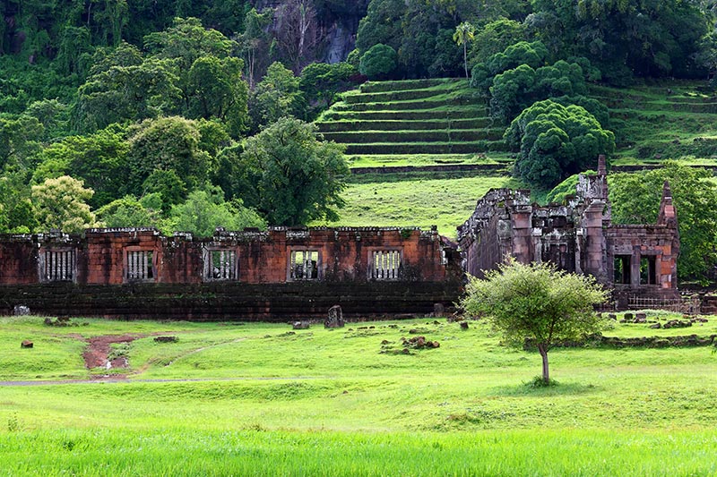 ตั้งอยู่ห่างจากเมืองปากเซราว ๆ 40 กิโลเมตร เป็นโบราณสถานที่สำคัญทางฝั่งลาวใต้ มีอายุมากกว่า 1,000 ปี สันนิษฐานว่าสร้างขึ้นราวพุทธศตวรรษที่ 12 ตัวปราสาทตั้งอยู่บริเวณเชิงเขา มีสถาปัตยกรรมแบบขอม บริเวณโดยรอบจะมีสระน้ำใหญ่อยู่ด้านหน้า 2 สระ เลยจากสระน้ำเข้าไปจะเป็นทางเดินที่ทอดยาวเข้าสู่ตัวปราสาท โดยองค์ประธานของปราสาทจะอยู่ด้านในสุดบนเชิงเขา ถ้ามีเที่ยวช่วงฤดูฝนก็จะได้เห็นป่าเขาและบริเวณโดยรอบของปราสาทเป็นสีเขียวตัดกับสีน้ำตาลของปราสาทอย่างสวยงาม ทั้งนี้ปราสาทหินวัดพูได้รับการจดขึ้นทะเบียนเป็นมรดกโลกโดยองค์การยูเนสโกเมื่อปี 2001