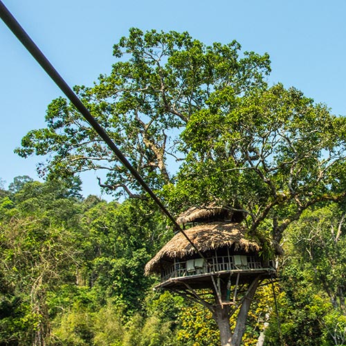 อีกหนึ่งประสบการณ์การท่องเที่ยวลาวที่จะให้นักท่องเที่ยวได้สัมผัสกับป่าเขา และวิถีชีวิตสุดเรียบง่ายอย่างแท้จริง พร้อมกับยังจะได้สนุกสนานไปกับการห้อยโหนซิปไลน์กลางป่าใหญ่ ได้นอนบนบ้านต้นไม้สูงแบบทาร์ซาน ท่ามกลางบรรยากาศของธรรมชาติที่สวยงามและอุดมสมบูรณ์สุด ๆ ซิปไลน์แต่ละจุดจะมีความสูงและยาวแตกต่างกันออกไป โดยสถานีที่ยาวที่สุดจะอยู่ที่ 600 เมตรเลยทีเดียว โดยจะพานักท่องเที่ยวไปสัมผัสกับบรรยากาศดังกล่าวภายในพื้นที่ของ Bokeo National Park ดูรายละเอียดเพิ่มเติมได้ที่