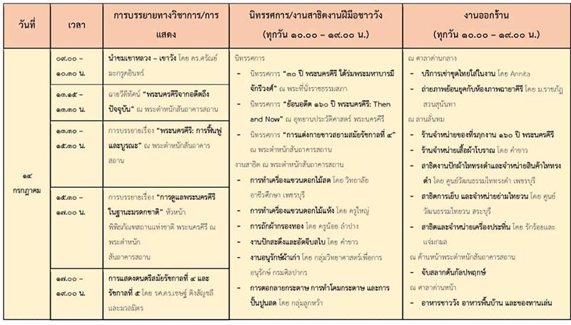 - นิทรรศการพิเศษ "30 ปี พระนครคีรีใต้ร่มพระมหาบารมีจักรีวงศ์"