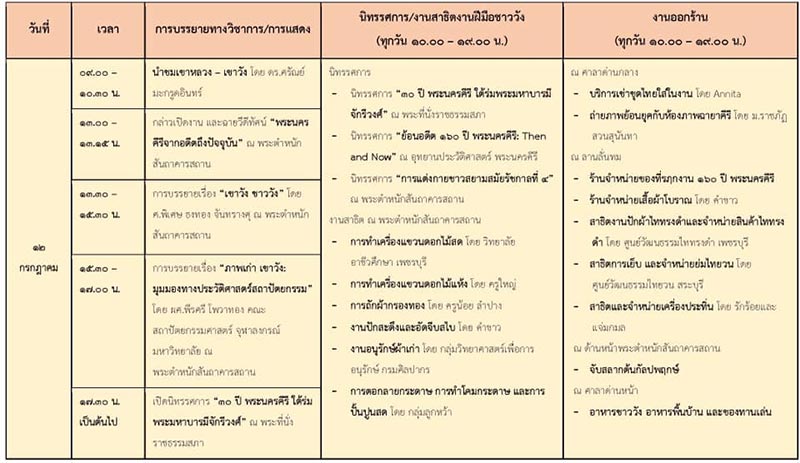 - การบรรยายทางวิชาการ เรื่อง เขาวัง-ชาววัง, ภาพเก่า เขาวัง : มุมมองทางประวัติศาสตร์สถาปัตยกรรม, จากเขาหลวง-เขาวัง และผู้คนและการแต่งกายสยามสมัยรัชกาลที่ 4
