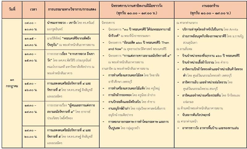 โดยงาน ๑๖๐ ปี พระนครคีรี จะจัดขึ้นระหว่างวันที่ 12-14 กรกฎาคม 2562 ซึ่งภายในงานจะมีกิจกรรมให้ร่วมสนุกมากมาย ดังนี้