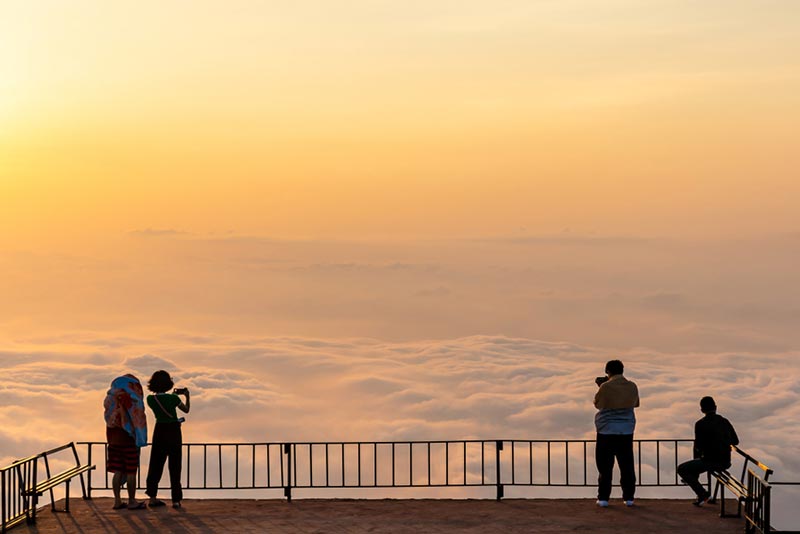 สถานที่ชมทะเลหมอกที่ต้องบอกว่าสวยและอลังการที่สุดในเมืองไทย ตั้งอยู่ที่ตำบลบ้านเนิน อำเภอหล่มเก่า เป็นยอดเขาสูงประมาณ 1,768 เมตร โดยรอบของจุดชมวิวจะเป็นไร่กะหล่ำปลีที่ลดหลั่นกันไปตามระดับความสูงของเนินเขา ในช่วงเช้าของทุกวันจะมีทะเลหมอกให้ได้ชม แต่จะสวยอลังการมากที่สุดในช่วงปลายฝนต้นหนาว หุบเขากว้างใหญ่ไพศาลจะกลายเป็นผืนปุยนุ่นสีขาวนวลตา พอพระอาทิตย์โผล่ขึ้นมาพ้นหลังเขา ก็ฉาบทาสีเหลืองอมส้มไปทั่วผืนหมอก ต้องลองมาเห็นด้วยตาตัวเองกันสักครั้งแล้วจะประทับใจจนอยากลับไปซ้ำ