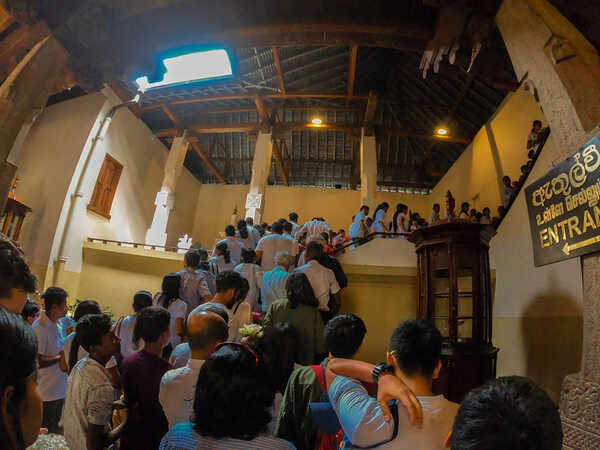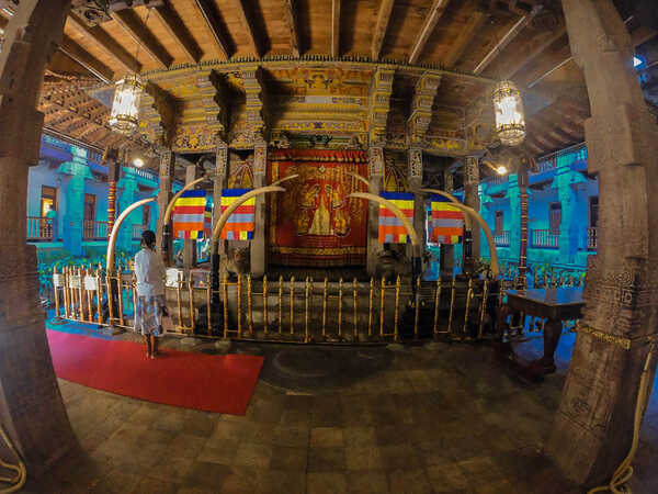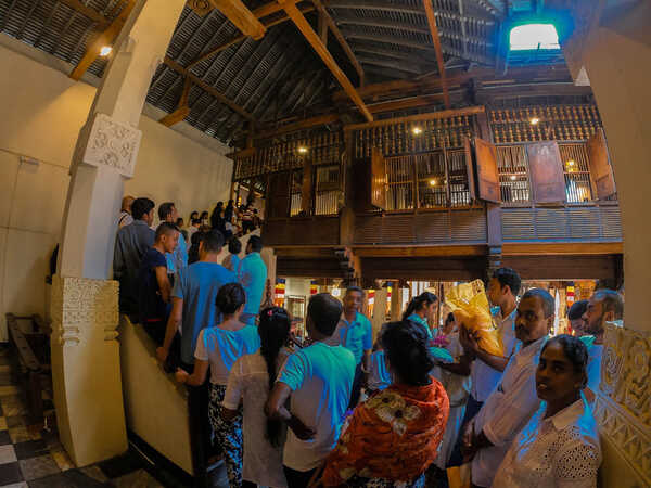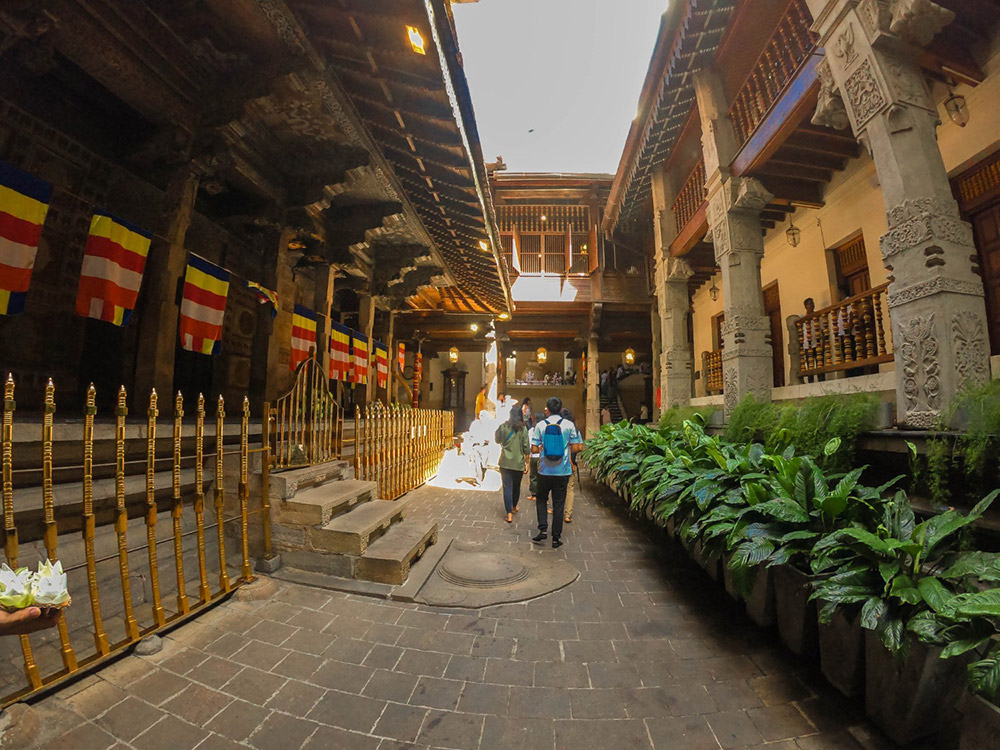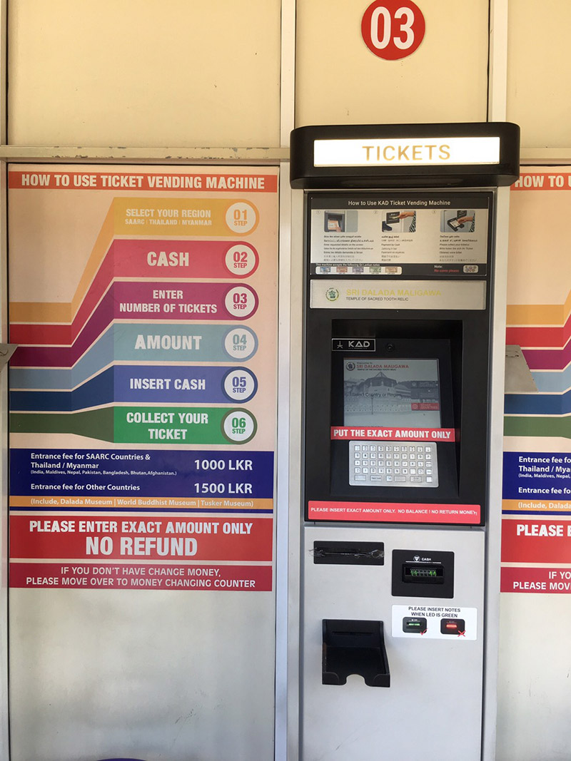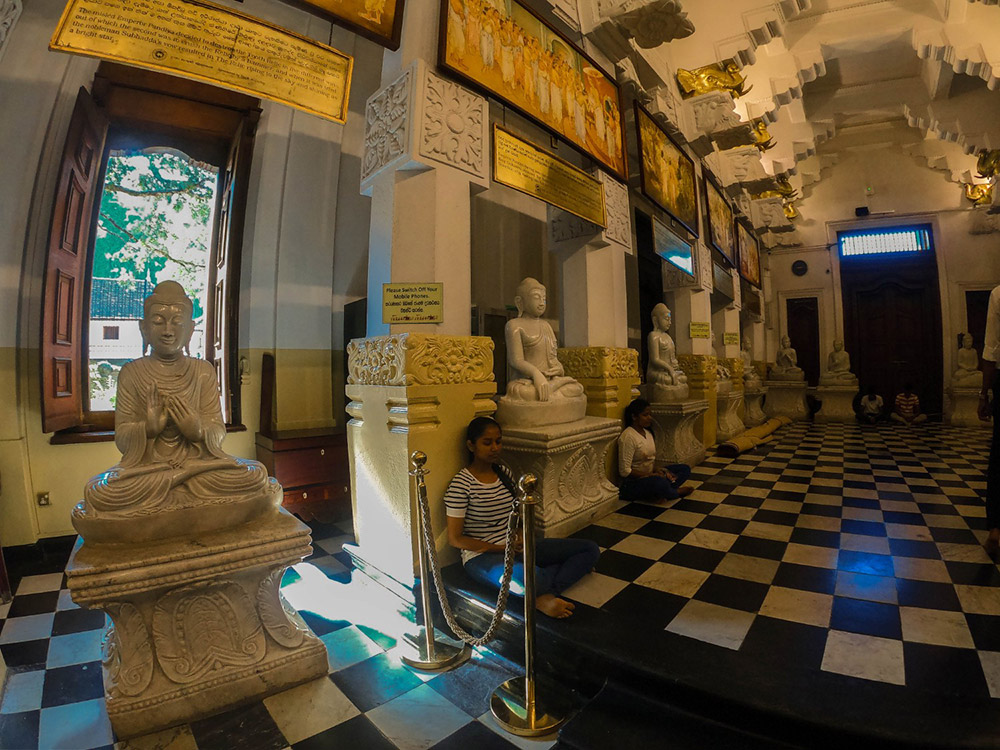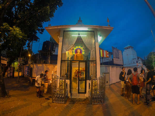 ประตูทางเข้าวัดพระเขี้ยวแก้วจะมีการตรวจสแกนกระเป๋าและสิ่งของต่าง ๆ แยกทางเข้าชาย-หญิง เมื่อเดินเข้าไปในวัดแล้วจะมีช่องให้ซื้อตั๋วเพื่อเข้าไปในวัด เวลาในการกราบพระเขี้ยวแก้วจะมีเวลากำหนด ลองเช็กตารางดูก่อนได้ เพื่อไม่ให้เสียเวลาในการเข้ามากราบ และที่สำคัญคือคนเยอะมาก ๆ แน่นมาก ๆ เฉพาะคนศรีลังกาเองก็แน่นวัดมากแล้ว