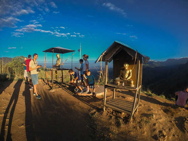 กราบไหว้เพื่อความเป็นสิริมงคล แล้วรีบเดินลงก่อนมืด (อ้อ พกไฟฉายไปด้วยก็ดีนะ เพราะทางเดินลงค่อนข้างชัน และถ้าไปชมพระอาทิตย์ตกที่นั่น ตอนเดินลงก็ต้องมืดแล้ว นึกภาพออกปะ ? ฮ่า ๆ)