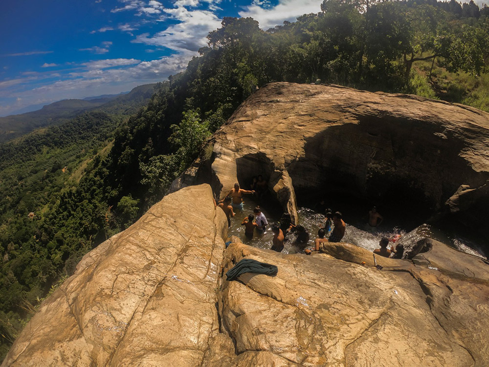 ถ่ายรูปกันเรียบร้อย ฝนก็เริ่มเทลงมา เทลงมา เทลงมา ให้เสื้อตัวเปียก เสื้อตัวเปียก เสื้อตัวเปียก เฮ้ย !! ครับ ฝนตกละครับ เราต้องรีบวิ่งขึ้นรถตู้ ก่อนจะต้องเปลี่ยนเสื้อผ้าชุดใหม่เพราะเปียกไปมากกว่านี้ เรากำลังมุ่งหน้าไปเมือง Ella เพื่อจะไปน้ำตก Diyaluma Waterfalls ระหว่างทาง ฝนก็ตก ๆ หยุด ๆ ให้เราหวั่นใจเล่น ๆ ว่าจะต้องเดินขึ้นเขาไปดูน้ำตกแบบเปียก ๆ กันหรือเปล่า แต่แล้วโชคก็เข้าข้างเราครับ พอมาถึงจุดเริ่มเดินขึ้นน้ำตกฝนก็หยุดพอดี (น้ำตกแห่งนี้ต้องจ้างไกด์พาเดินขึ้นไป ซึ่งโดยส่วนตัวเราว่าราคาแอบแรงไปหน่อย น้ำตกก็สวยแค่มุมเดียว เอ๊ย !! สวยครับ ไปดูเอาเอง)