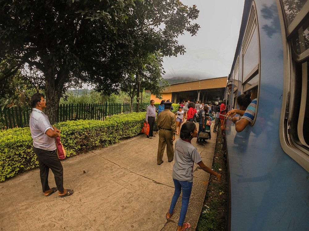 ถึงเวลานัดหมายรถตู้มารับเราที่ถนนใหญ่แล้วไปยังสถานีรถไฟ Ella Railway Station เพื่อซื้อตั๋วขึ้นรถไฟที่เขาว่า เป็นรถไฟสายหนึ่งที่สวยติดอันดับโลก วิวข้างทางจะผ่านเขาและไร่ชาสุดลูกหูลูกตา เรานั่งรถไฟมุ่งหน้าไปยังเมือง Ambewela Railway ซึ่งรถไฟจะใช้เวลาในการเดินทางประมาณ 3 ชั่วโมง