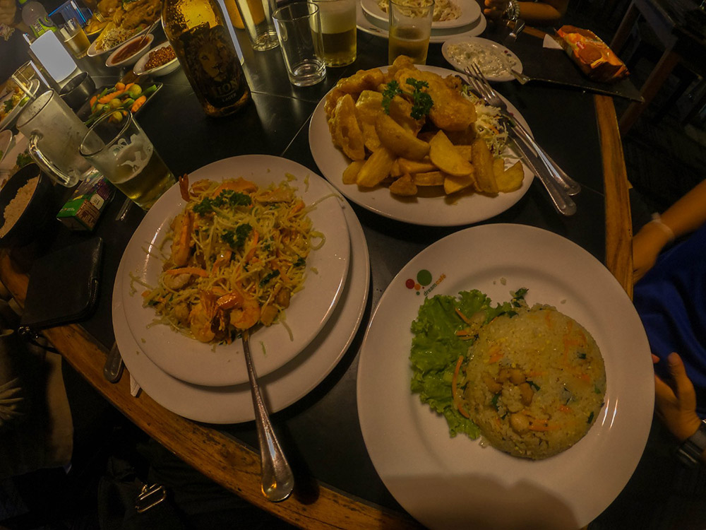 หลังจากดื่มด่ำกับวันแรกของศรีลังกามาพอสมควร มื้อค่ำเริ่มถามหาว่าเราควรแวะกินร้านไหน จึงลองเปิดดูใน internet เปิดแผนที่หาร้านค้าที่ไม่แพงมาก แล้วขับรถตู้ไปตาม map เราทุกคนหิ้วท้องไปด้วยความหิวโหย เพราะอาหารพื้นเมืองมื้อเที่ยงถูกกระเพาะอาหารย่อยไปหมดแล้ว แต่พอไปถึงร้านสิ่งที่คาดไม่ถึงก็เกิดขึ้น....ร้านปิด !! เฮ้ย !! ร้านปิด !!! ทำไงละทีนี้ มองไปทางไหนก็มีแต่บ้านคน ไม่มีร้านอาหารเลย พวกเรามาถึงหน้าร้านแล้ว หิ้วท้องกันมา 8 คน จะทำยังไงงงงง
