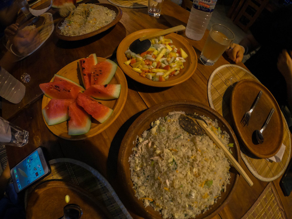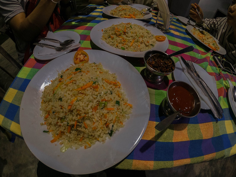ความหิวเริ่มส่งผลให้เกิดความหงุดหงิดใจ แต่ทันใดนั้นประตูของร้านก็ถูกเปิดออก เจ้าของร้านเห็นรถตู้จึงเข้ามาคุยกับเรา แล้วบอกกับเราว่าวันนี้ร้านปิด แต่ถ้าเราทั้ง 8 คน อยากกินเขาจะเปิดร้านและทำอาหารให้ โอ้โห...ใจดีศรีลังกาสุดฤทธิ์ เราจึงรีบลงจากรถตู้ นั่งรออาหารอย่างใจจดจ่อ ขอข้าวผัดไก่มาเลยละกัน ง่ายดี หน้าตาประมาณนี้แหละครับ