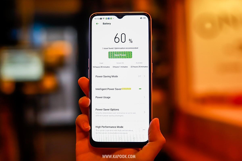 ความดีงามของ OPPO A5 2020 ไม่ได้หยุดอยู่ที่กล้อง 4 ตัวและการถ่ายภาพเท่านั้น แต่ยังมีระบบเสียงสเตอริโอแบบคู่และ Dolby Atmos ช่วยให้เสียงดังชัดเจนทุกทิศทางคล้ายกับระบบลำโพงของโรงภาพยนตร์ งานนี้ถ้าได้ดูหนัง ฟังเพลง ดูยูทูป คงสนุกไม่น้อยเลยทีเดียว ที่สำคัญแบตเตอรี่ 5,000 mAh ที่ให้มาก็จุใจเว่อร์ เห็นไหมว่าขนาดแวะถ่ายรูป นั่งเล่นเกมมาทั้งวัน แต่แบตฯ ยังเหลือมากถึง 60 เปอร์เซ็นต์เลยทีเดียว