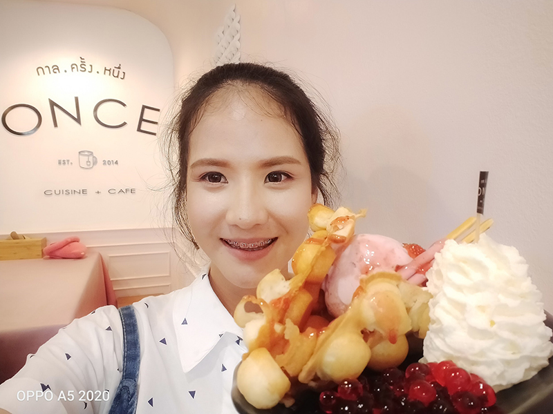 ตะลอนหามุมฮิปถ่ายรูปมาหลายชั่วโมง ขอแวะซื้อชานมไข่มุกเติมน้ำตาลให้ร่างกายและเปลี่ยนอารมณ์มาถ่ายเซลฟี่บ้างดีกว่า เพราะกล้องหน้าของ OPPO A5 2020 นั้นถ่ายเซลฟี่ได้สวยเนียนไม่แพ้สมาร์ทโฟนตัวเทพราคาแพง ๆ ด้วยกล้องหน้าที่มีความละเอียดถึง 8 ล้านพิกเซล แถมมี AI ช่วยแต่งผิวให้เรียบเนียนได้ในทันทีอีกด้วย
