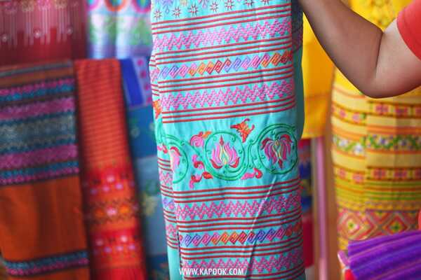 จากบ้านแกะสลักโลหะ ก็ไปต่อกันที่งานแบบผู้หญิงกันบ้าง ไปชมร้านตัดเย็บผ้าพื้นเมือง ใครที่ชอบชุดพื้นเมืองของชาวเหนือและเมียนมา บอกเลยว่าจะต้องถูกใจที่นี่ เพราะพี่เจ้าของร้านสามารถตัดเย็บได้หลากหลายรูปทรง มีผ้าให้เลือกหลากหลายลวดลายและสีสัน และยังแนะนำได้ด้วยว่าหุ่นแบบไหนใส่ชุดอะไรถึงจะเหมาะสม ที่สำคัญราคาไม่แพงเลย