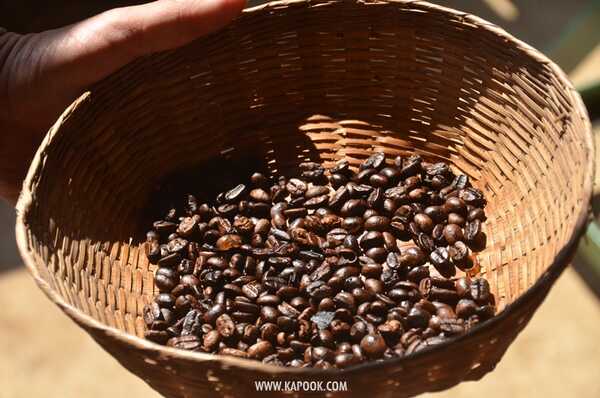 ภายในฟาร์มแห่งนี้มีชะมดให้เราชมด้วย พร้อมกับเมล็ดกาแฟขี้ชะมดมากมายที่กำลังวางตากไว้ คุยกันไม่ถึง 5 นาที ท่านก็ลงมือคั่วกาแฟแบบดั้งเดิมให้ชมกันเลย สามารถคั่วได้ทุกรสชาติทั้งเข้มและเบา วิธีการดื่มกาแฟของที่นี่ก็ต้องกินควบคู่กับขนมปังเนยสดพม่า กาแฟเข้ม ๆ กับขนมปังเนื้อนุ่มหอมหวานมัน กลมกล่อมละมุนคอ พาร่างกายดีดไปทั้งวัน