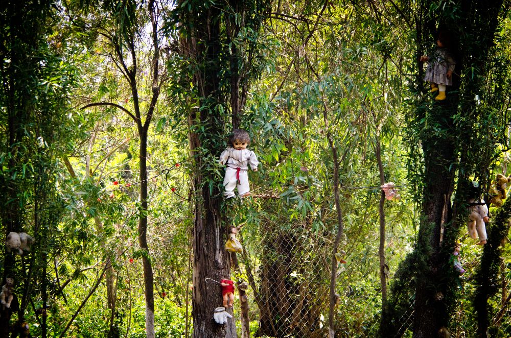 ท่ามกลางความเงียบสงัดของป่า ร่างเล็ก ๆ ของตุ๊กตาที่ไร้แขนขาและบ้างก็ไร้ศีรษะนับพันตัวถูกแขวนห้อยอยู่ตามต้นไม้ ว่ากันว่าพวกมันคอยทำหน้าที่เป็นผู้ดูแลเกาะเล็ก ๆ แห่งนี้ และยามใดก็ตามที่มีคนใจกล้าเข้ามาเยี่ยมเยือน พวกเขาก็จะถูกจับจ้องโดยดวงตาที่ไร้วิญญาณหลายร้อยคู่