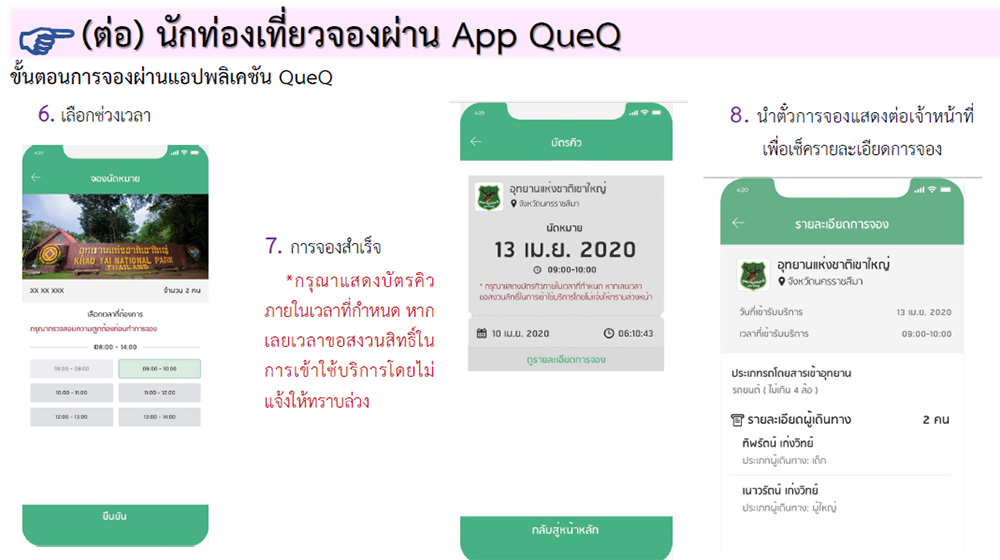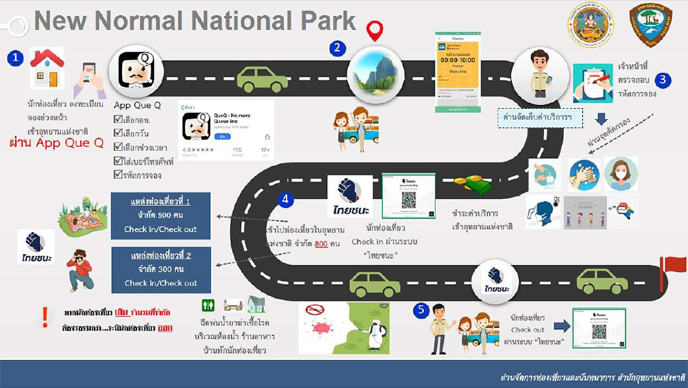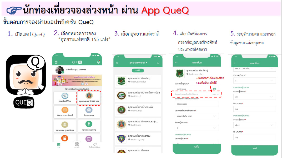 1. นักท่องเที่ยวลงทะเบียนจองเข้าอุทยานแห่งชาติล่วงหน้า ผ่านแอปพลิเคชัน Que Q