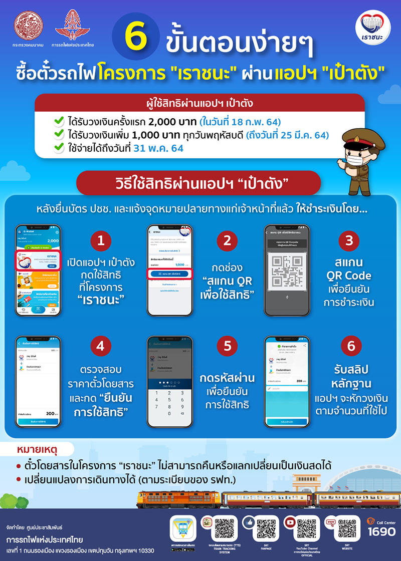 ขั้นตอนการซื้อตั๋วรถไฟ สำหรับโครงการ “เราชนะ”