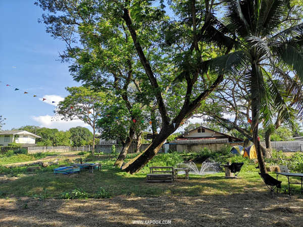 สองเท้าพาเราค่อย ๆ เดินไปตามทางที่สองข้างทางเรียงรายด้วยบ้านไม้หลังเก่า ประตูบานเฟี้ยม อาจจะทรุดโทรมไปบ้างตามเวลา แต่ยังมีคนอาศัยอยู่และพร้อมต้อนรับนักท่องเที่ยวที่มาเยือน ซึ่งจะมีกิมมิกเล็ก ๆ น้อย ๆ ให้ได้ชมกัน แถมยังมีสตรีตอาร์ตที่คนในชุมชนร่วมกันสร้างขึ้นให้ได้ไปแชะภาพเป็นที่ระลึกด้วย และไม่ควรพลาดไปนั่งพักกันที่ “ครับเบอร์เกอร์” ร้านเบอร์เกอร์โฮมเมดที่มีบรรยากาศสุดชิลให้ได้นั่งดื่มด่ำกับต้นไม้ใหญ่หลังร้าน (เปิดวันเสาร์-อาทิตย์) หรือลิ้มรสอาหารตามสั่งจากเชฟฝีมือดี ณ “ร้านทรงศิลป์”