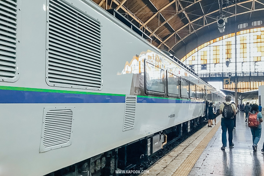 จากนั้นถึงเวลาอันสมควร แดดร่มลมตก พวกเราก็นั่งรถไปสถานีรถไฟชุมทางฉะเชิงเทรา เพื่อขึ้นขบวนรถ KIHA 183 เดินทางกลับ ซึ่งระหว่างทางรถจะจอดตามสถานีใหญ่ ๆ ใครสะดวกลงสถานีไหนให้แจ้งเจ้าหน้าที่ไว้ได้เลย เรียกว่าสะดวกสบายมาก และเมื่อนาฬิกาบอกเวลา 19.30 น. รถไฟก็เข้าเทียบท่าสถานีรถไฟกรุงเทพ ถึงที่หมายโดยสวัสดิภาพ