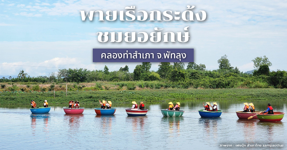 พายเรือกระด้งชมยอยักษ์ คลองท่าสำเภา จ.พัทลุง สัมผัสเสน่ห์วิถีชุมชนกลางธรรมชาติ ชมยอยักษ์กลางน้ำ พร้อมเก็บภาพฟีลลิ่งดี ๆ ท่ามกลางบรรยากาศสงบและเรียบง่าย