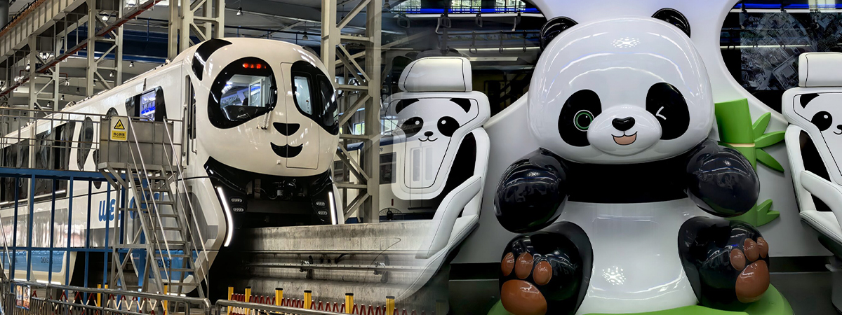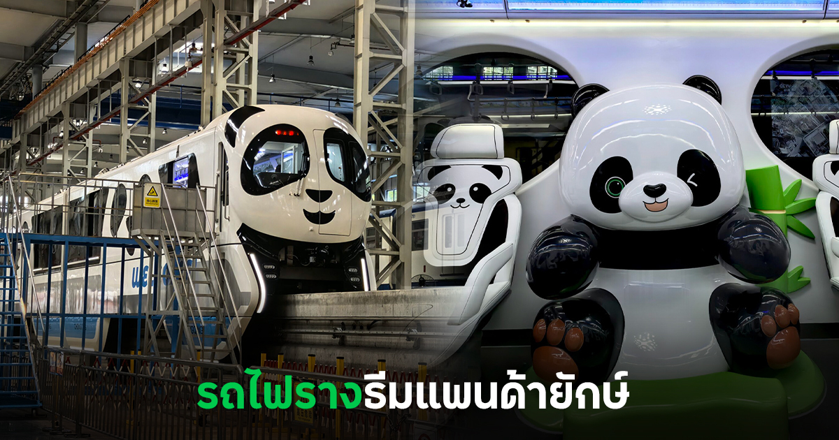ชมภาพรถไฟเลื่อนรางคร่อมธีมแพนด้ายักษ์ แลนด์มาร์กใหม่แห่งเมืองฉงชิ่ง ประเทศจีน ที่ตกแต่งภายใน-ภายนอกเต็มไปด้วยจักรวาลของแพนด้า
