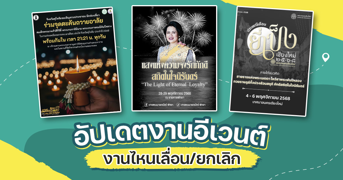 ติดตามอัปเดตงานอีเวนต์ทั่วไทย งานไหนเลื่อน งานไหนยกเลิก เรารวมมาให้ครบ เช็กก่อนออกจากบ้าน จะได้ไม่พลาดกัน ^ ^