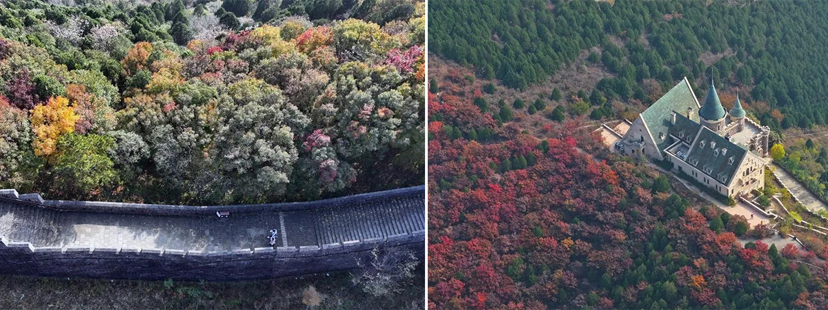 สำนักข่าวซินหัวรายงานว่า เข้าสู่ช่วงปลายปีแบบนี้ ธรรมชาติในเขต จี้โจว (Jizhou) เมืองหนึ่งทางตอนเหนือของ เทศบาลนครเทียนจิน กำลังเปลี่ยนโฉมอย่างงดงาม เมื่อใบไม้ทั่วทั้งหุบเขาเริ่มผลัดเปลี่ยนสีจากเขียวเป็นเหลือง ส้ม และแดงสดตัดกับแนวภูเขาสูงที่ทอดตัวสลับซับซ้อน กลายเป็นภาพทิวทัศน์ที่สวยราวภาพวาด โดยเฉพาะบริเวณ ด่านหวงหยากวน (Huangyaguan Pass) ซึ่งเป็นส่วนหนึ่งของ กำแพงเมืองจีน ที่ตั้งอยู่ในพื้นที่นี้ นักท่องเที่ยวสามารถเดินชมวิวตลอดแนวกำแพงพร้อมชมใบไม้เปลี่ยนสีที่ปกคลุมทั่วภูเขาได้อย่างใกล้ชิด