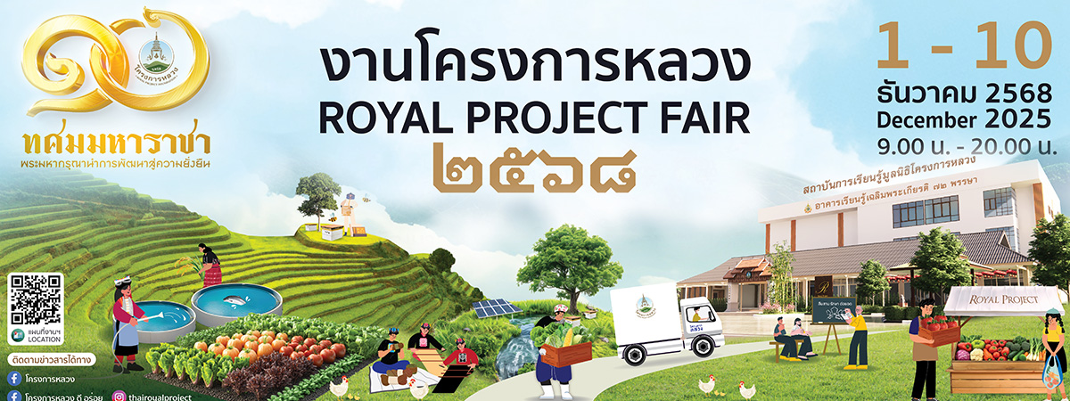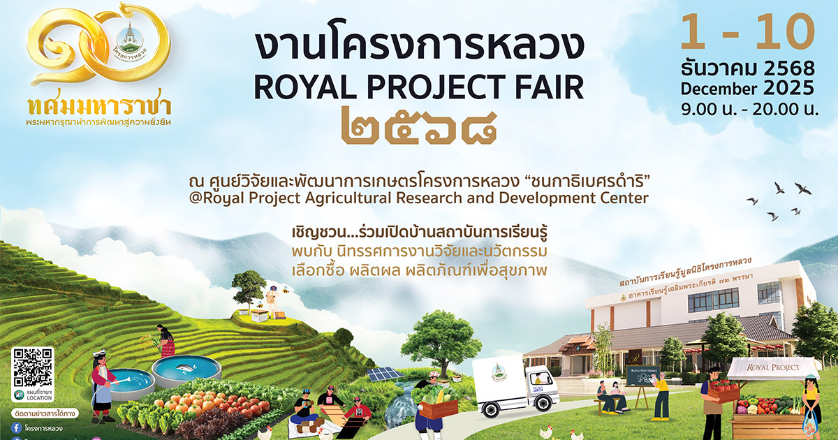 ชม... นิทรรศการที่จะถ่ายทอดพระราชปณิธาน สืบสาน รักษา และ ต่อยอด พร้อมชมความสำเร็จของงานวิจัยและนวัตกรรมของมูลนิธิโครงการหลวง รวมพลังความร่วมมือจากทุกภาคส่วน เพื่อพัฒนาและยกระดับคุณภาพชีวิตชุมชนบนพื้นที่สูง
