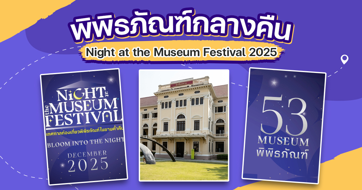 เตรียมตัวให้พร้อมสำหรับค่ำคืนที่เต็มไปด้วยศิลปะ ประวัติศาสตร์ และความสนุกสนานกับ Night at the Museum Festival 2025 ชวนทุกคนออกเดินทางมาสัมผัสประสบการณ์พิพิธภัณฑ์ในมุมมองใหม่ ที่ผสมผสานความรู้และความบันเทิงอย่างลงตัว ใครก็ตามที่อยากเติมเต็มค่ำคืนด้วยความทรงจำแปลกใหม่และไม่ซ้ำใคร บอกเลยว่าห้ามพลาดงานนี้เด็ดขาด รายละเอียดจะเป็นยังไง ? จัดวันไหน ? ที่ไหนบ้างนั้น ? มาอัปเดตไปพร้อมกันเลย