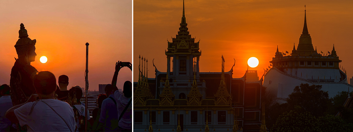 ร่วมสัมผัสห้วงเวลาสุดวิจิตรบนจุดชมพระอาทิตย์ตกดิน ณ ภูเขาทอง วัดสระเกศราชวรมหาวิหาร ในช่วงเทศกาลปีใหม่ 2569 ดื่มด่ำกับทัศนียภาพอันงดงามเกินบรรยายของแสงสุดท้ายที่อาบไล้ขอบฟ้า ก่อนจะเปลี่ยนผ่านเข้าสู่ความตระการตาของแสงไฟยามค่ำคืนทั่วพระนครในแบบที่ไม่เคยมีมาก่อน เตรียมตัวให้พร้อมสำหรับการเปิดประตูต้อนรับนักท่องเที่ยวครั้งสำคัญในบรรยากาศสุดพิเศษที่ไม่ควรพลาดด้วยประการทั้งปวง