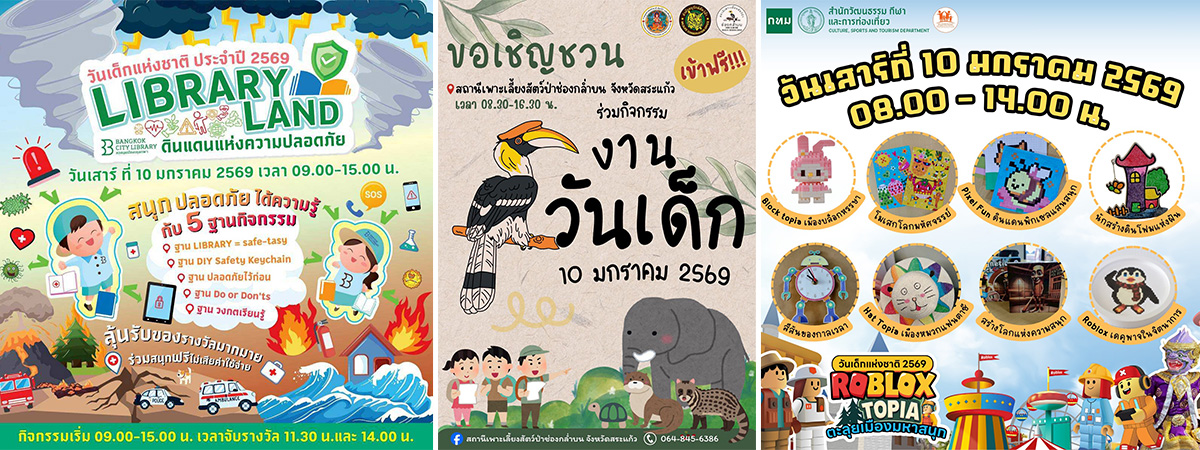 ชวนเที่ยวงานวันเด็ก 2569 วันเสาร์ที่ 10 มกราคม 2569 เวลา 09.00-15.00 น. ณ หอสมุดเมืองกรุงเทพมหานคร (Bangkok City Library)