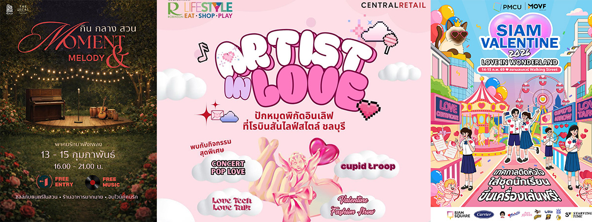 ชวนเที่ยวงานวาเลนไทน์ 2569 Robinson Lifestyle Chonburi x The Artist Studio วันที่ 14 กุมภาพันธ์ 2569 ตั้งแต่เวลา 11.00 น. เป็นต้นไป ณ โรบินสันไลฟ์สไตล์ ชลบุรี (ลานโปรฯ ชั้น 1)