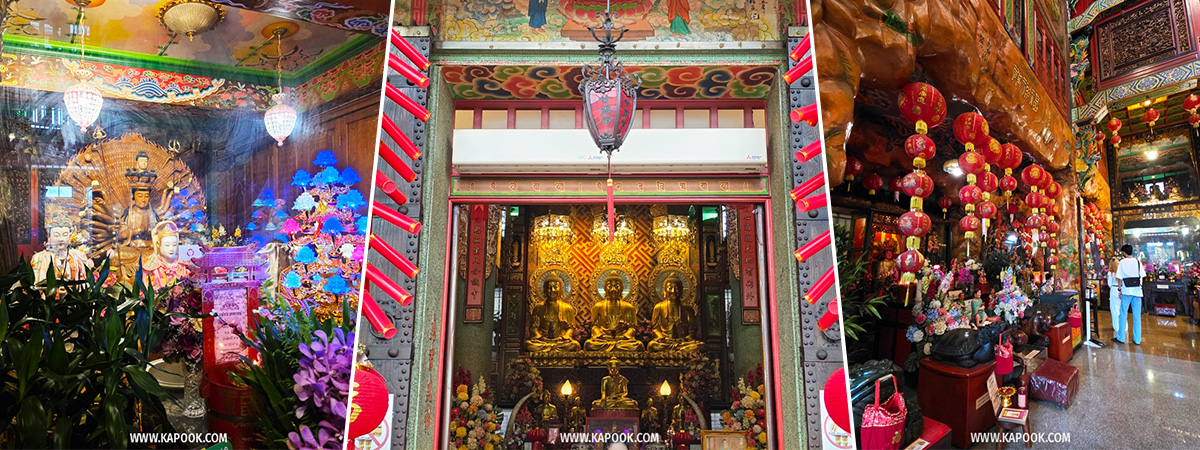 - เทพเจ้ากวนอู และเทพอื่น ๆ เช่น เจ้าแม่ทับทิม ท้าวเวสสุวรรณ พระแม่ธรณี พระกษิติครรภโพธิสัตว์ ครบครันเกือบทุกองค์ที่ต้องการขอพร